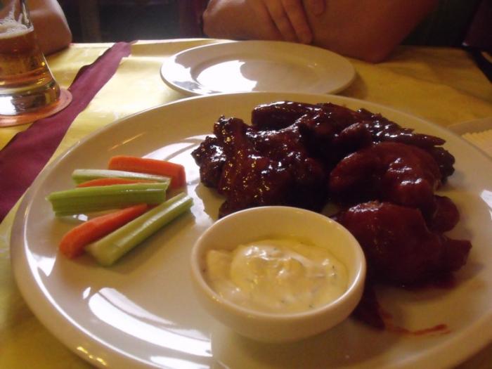 Мне так хотелось острых крылышек к пиву, но в последний момент я решила заказать микс из разных крылышек… И правильно сделала. После того как я попробовала острые крылышки, я выпила пиво просто залпом, такой остроты я не пробовала давно. Мой любимый мне не поверил, что может быть настолько остро, поэтому его бокал также быстро опустел )) Ох, уж мне эти «неверящие» ))