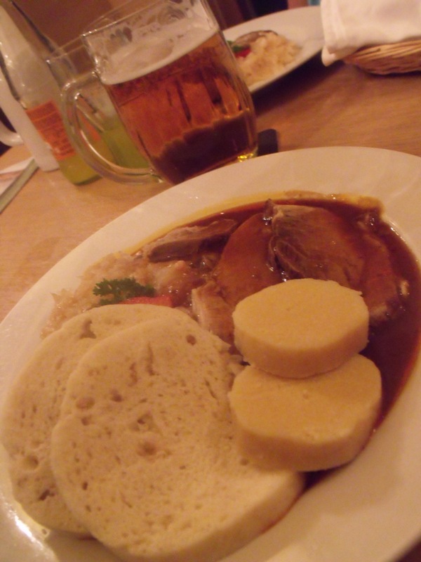 Я не помню названий блюд, но вкууусно, прям мммм… Ну и спела бы оду пиву. Прага — пивной рай =)