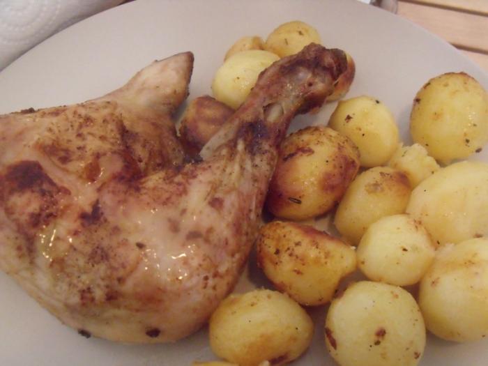 В последний день в Париже я не фоткала вообще. Я ходила и грустно вздыхала. Мы прошлись по сувенирным лавкам, всем купили подарочков и пошли домой. По пути я настояла на том, чтобы мы «наконец купили попробовать эту курицу гриль»… Она меня волновала все время пребывания. Купить можно было как целиком, так и частями. Внизу вертелок-крутелок пеклась молодая картошечка, выглядело это прекрасно. Согласились купить мне окорок, который ели в итоге все вместе… Оооочень вкусно, хоть и неудачная фотография.