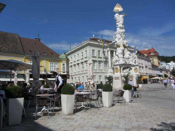 а перед ней — «чумная колонна». Таких колонн масса в австрийских городах. Их воздвигали после окончания эпидемии чумы, в благодарность за то, что эпидемия все-таки закончилась и кто-то остался жив: