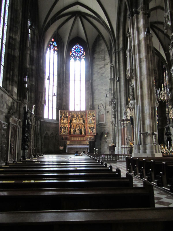 Посещение музея заняло немало времени, хотелось есть, но решили сначала сходить в Штефансдом (собор св. Стефана) и Петерсчерч (церковь святого Петра). И выйдя из Хофбурга, ушли в другую сторону и пришли на другую площадь. Пришлось возвращаться.