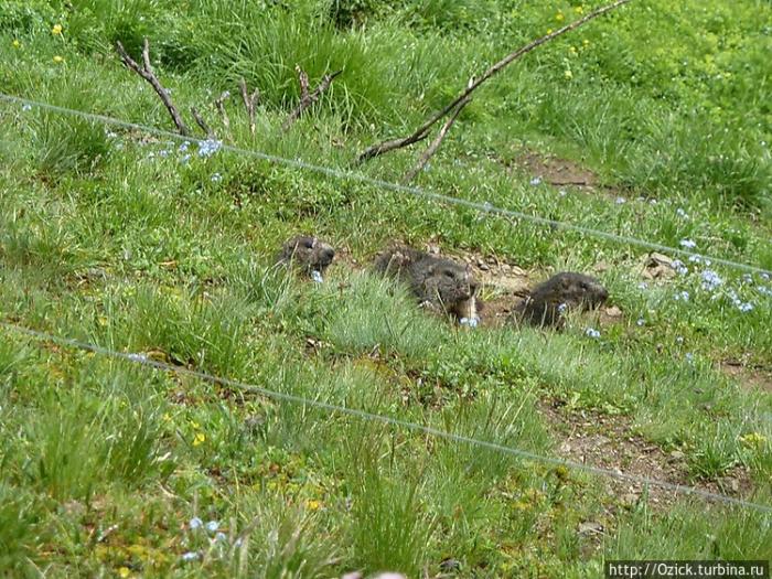 Ах ты! Вот и многочисленная семейка сурков, которые являются талисманом этих гор! Смешные. Почти каждые 10 секунд один из сурков поднимается на задние лапки и осматривается на предмет опасности, а при приближении угрозы свистит характерным резким свистом. Сфотографируем.