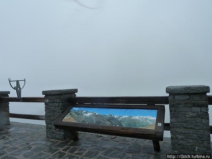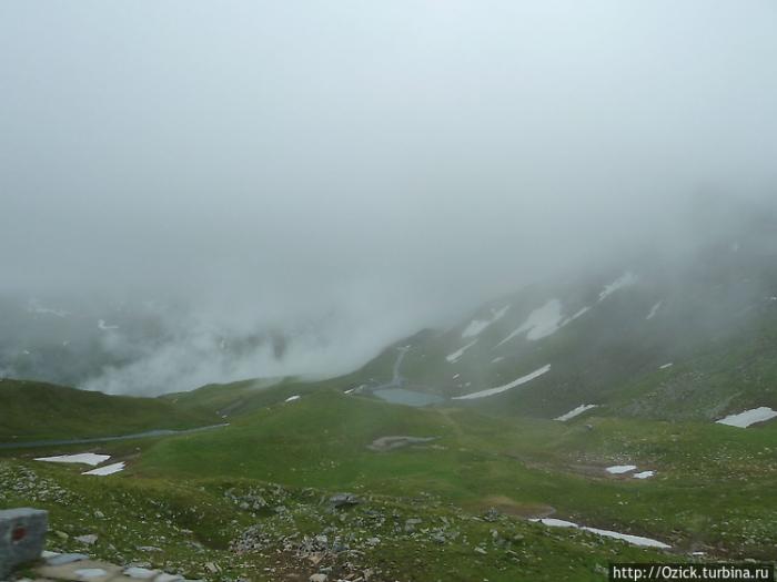Так это мы в облако попали! Не видно ни зги, а ведь впереди еще наиболее сложные участки высокогорной дороги со всеми ее «прелестями» — серпантинами, тоннелями, камнепадами и водопадами. Дальше двигаемся очень осторожно, с включенными «противотуманками». Наконец добираемся до высшей точки дороги Хохтор – 2504 м, со смотровой площадкой и многоярусной парковкой.