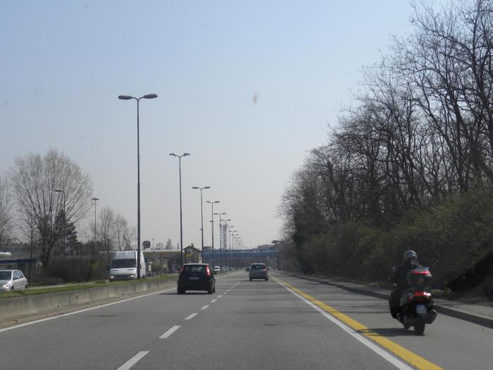 Въезд в город со стороны бесплатной дороги ничем не примечателен. Так сразу и не скажешь, что это Милан.