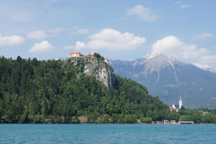 4. Бледский замок (Словения). Да, пожалуй, самое живописное расположение замка мы отдадим именно Бледу. Красота сводит с ума: лазурное озеро, по которому можно прокатиться на лодочках, остров с церковью, звон колоколов которой разносится на сотни километров, и всё это в окружении Альп…