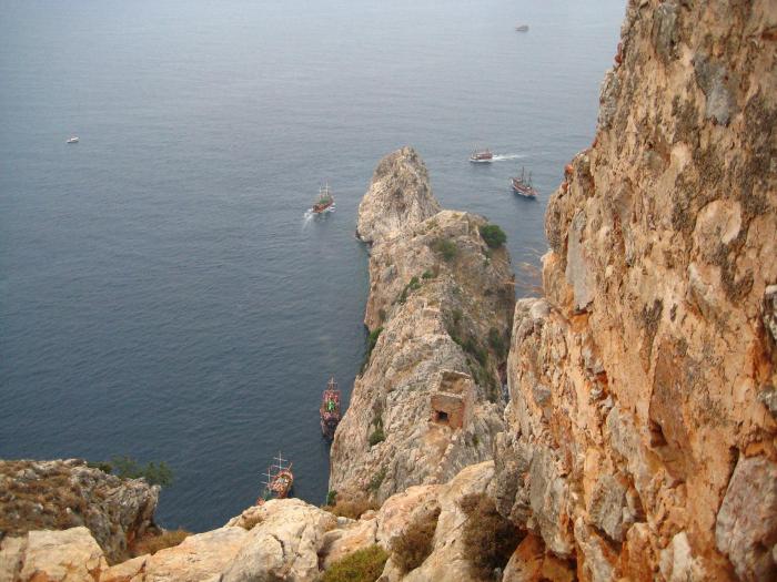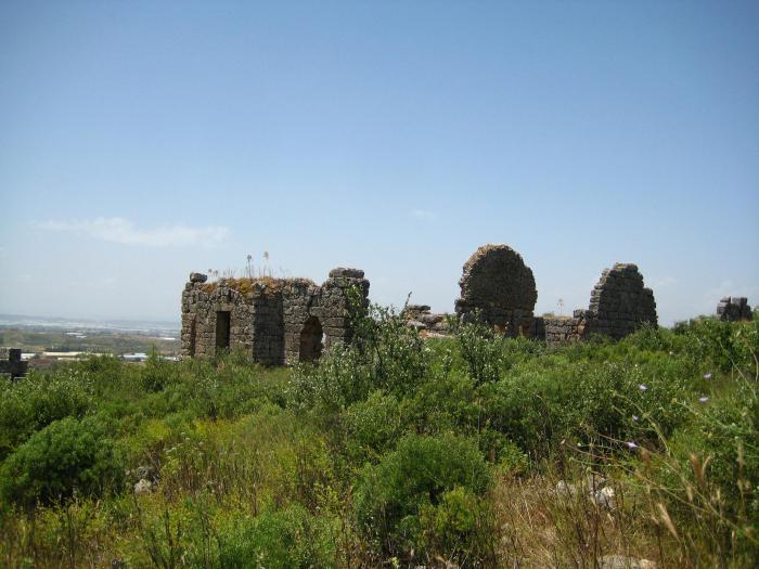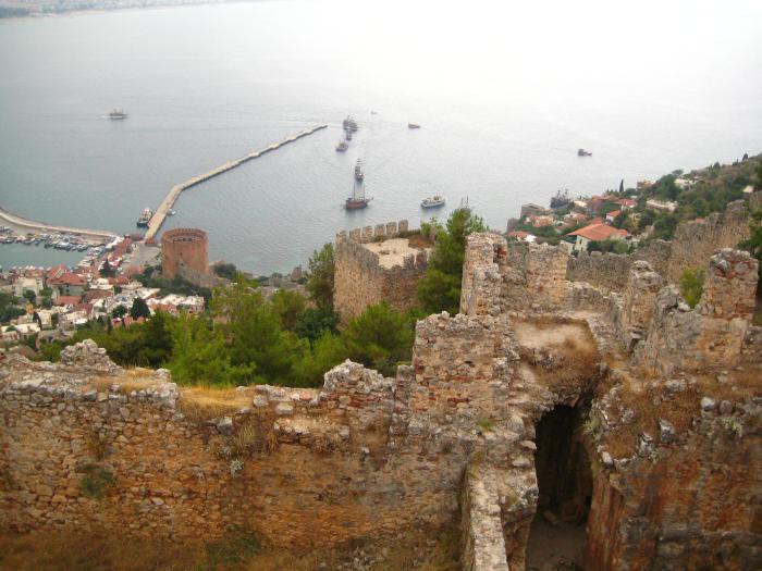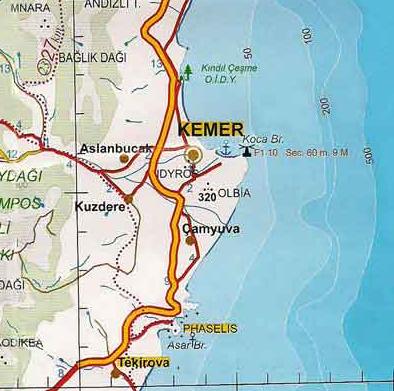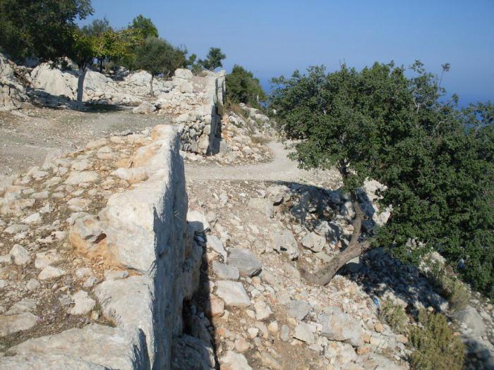 В этой части я писал, что не смог найти информацию про эту самую Ольбию. Все-таки нашел. Вношу поправку: оказывается, что Ольбия находилась на вершине горы у самого Кемера. Вот карта и несколько фотографий крепости из интернета. Надо будет там побывать: