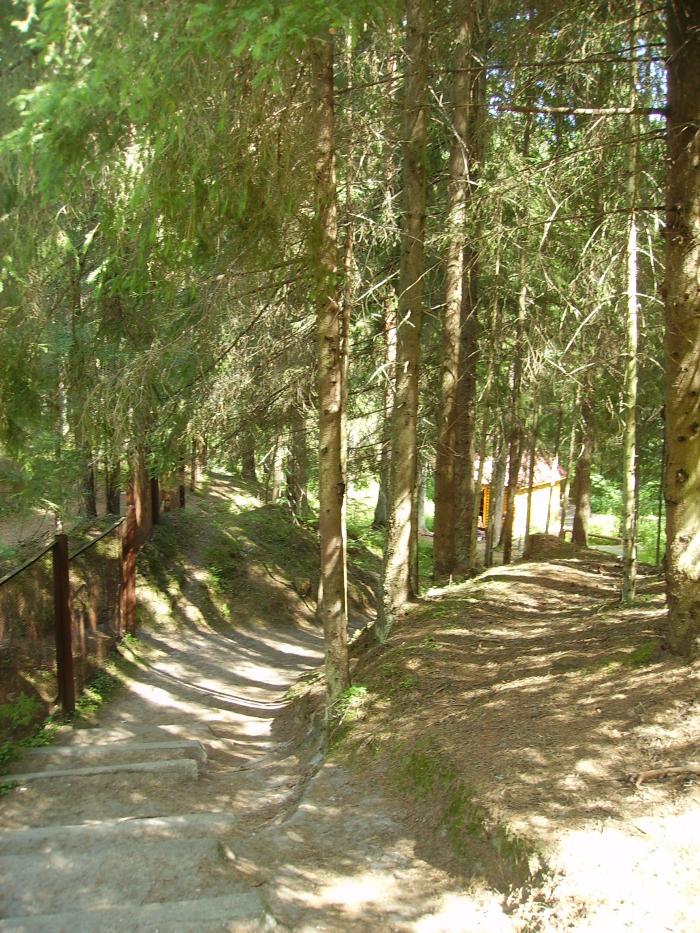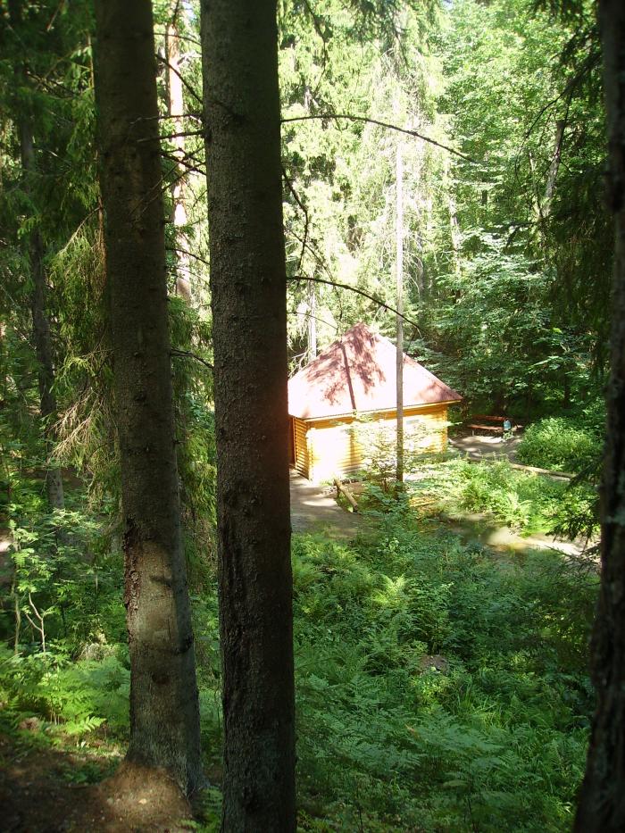 Купальня и родник в сосновом лесу. Народу хватает, хоть и понельник. И в основном петербуржцы(судя по номерам машин). Ну, немудрено.