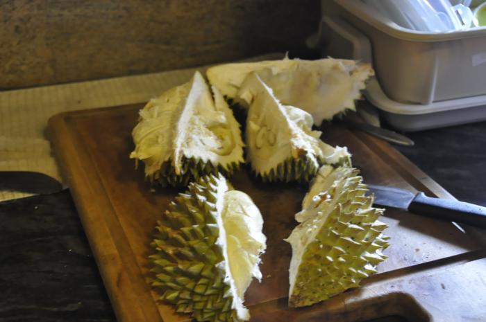 Однако опаленный солнцем ланкиец быстро нарезал его дольками и протянул нам. Тут то мы и распробовали его сочный восхитительный вкус. Ну давай хитрец насыпай полную чашу. Ну и конечно очень хотелось попробовать диковенный заморский фрукт дуриан. Я слыхал у него неповторимый аромат и своеобразный вкус. А еще говорят это природная виагра.