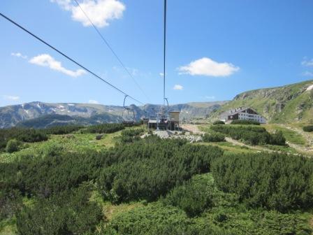 На подъёмнике ехали минут 20. Конечная станция — возле белой хижи на фото. Некоторые туристы останавливаются на ночевки там, условий и цен я не знаю.