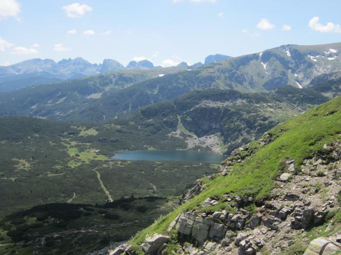 Сориентироваться помог неожиданный попутчик — пожилой мужчина-болгарин, с которым и прошли оставшуюся часть пути. А вот и уже знакомое сверху Долното озеро…