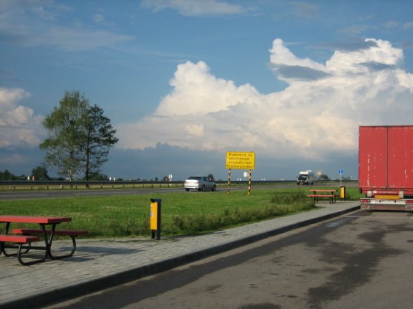 В 1.30 остановились на стоянке у кафе для ночлега километрах в 30 от границы Беларусь – Россия. Как оказалось, на ней же мы ночевали и год назад.
