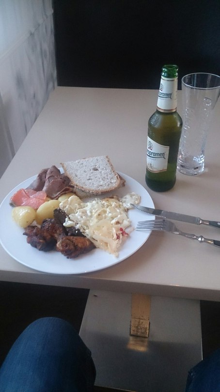 Завтрак хороший, в меню Бекон жареный, котлетки шведские (kjot bolla), омлет, яица (в крутую и обычные вареные)… так же Вашему желудку предлагают около 10 разных сортов вкусных булочек + конечно же фантастические круасаны (очень вкусные всем рекомендую).
