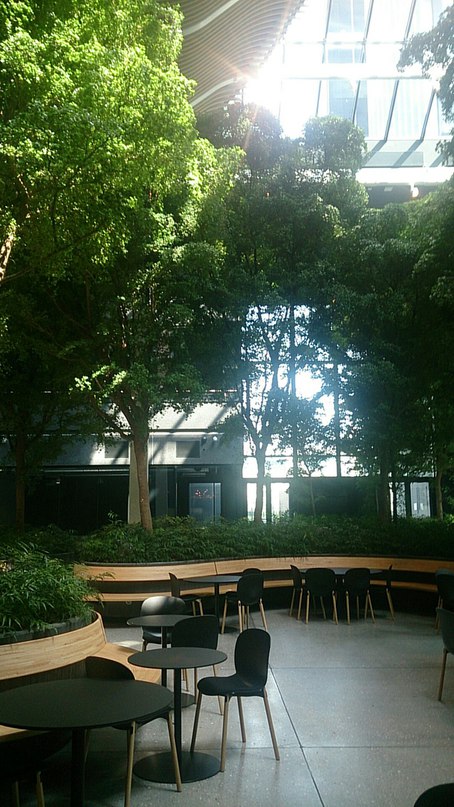 Есть так же зимний сад под крышей, огромных размеров в котором располагаются два кафе и бар.