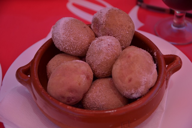 папас арругадас — «сморщенному картофелю». Местную мелкую картошку (у нас такую в голодный год в лучшем случае на семена отбросят) варят в кожуре с добавлением большого количества соли: на три килограмма картофеля – полкило соли. Отварив до готовности и не повредив кожуру, картошку сливают и ставят на маленький огонь на несколько минут, чтобы соль выступила на поверхности кожуры мелким инеем. Едят такой картофель с добавлением мохо, а если есть, что рядом еще положить – так совсем хорошо. Рыба? Класс. Мясо? Да любое.