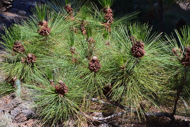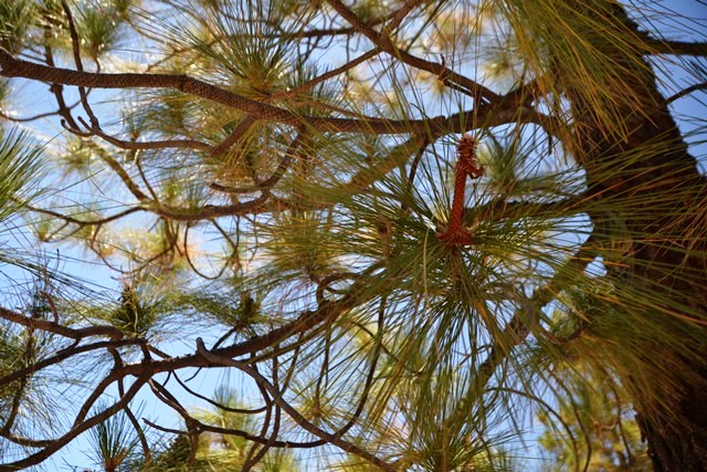 Поднимаясь вверх, к вершине Тейде, зримо видишь смену климатических поясов. Вот вместо банановых зарослей начинаются сосновые леса. Эта сосна – эндемик. Ее уникальная особенность заключается в том, что бедное растение, измученное атлантическими ветрами и отсутствием влаги, приспособилось жить на вулканической лаве и поглощать из воздуха воду длиннейшими иглами: