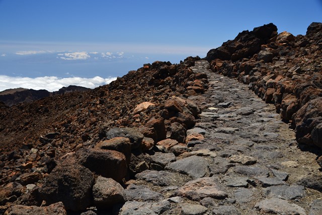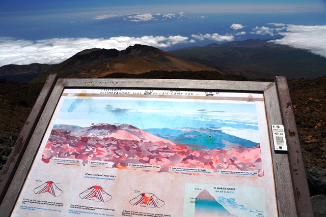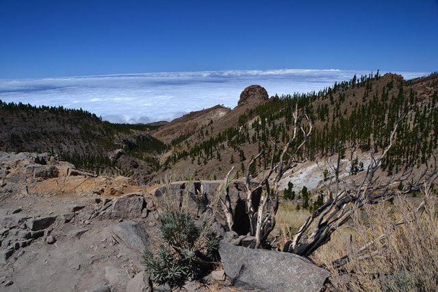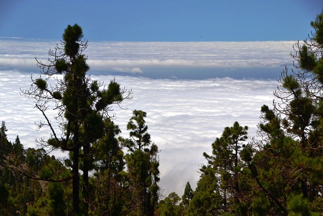 Облака разгоняются над Атлантикой и несутся, пока не столкнутся с громадиной Тейде. Мы замеряли несколько раз: пелена облаков висит над северной частью склона Тейде на высоте от 1000 до 1400 метров над уровнем моря (если верить указателям).