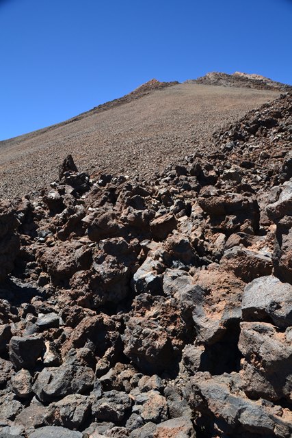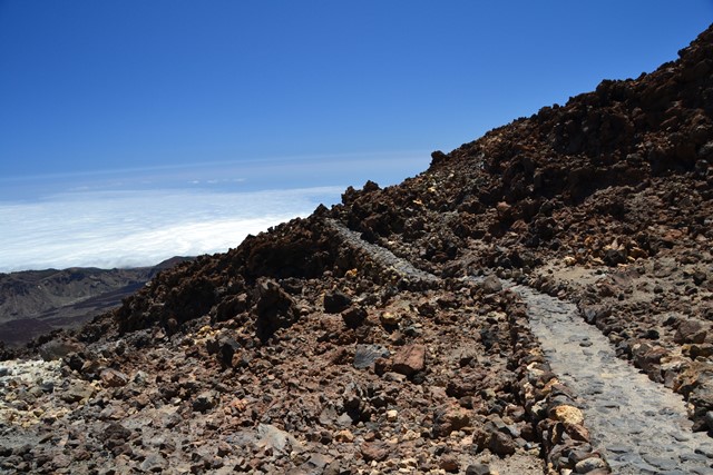 На самом деле даже уже привычная тяжесть фотоаппарата на высоте 3500 метров становится непосильным грузом. Дышится тяжело, ноги заплетаются. В этих условиях особо порадовала туристочка из числа соотечественниц, преодолевавшая маршрут на каблуках. Конечно, при полном макияже на Тейде только на шпильках!