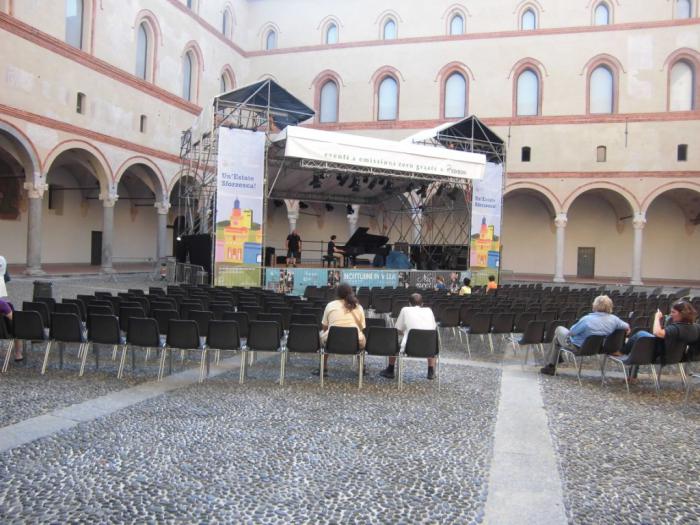 В одном из двориков замка играл пианист, на стульях сидели слушатели, одна из дамочек помогала пианисту рукой, дирижируя. Пианист руки не видел, но видимо чувствовал.