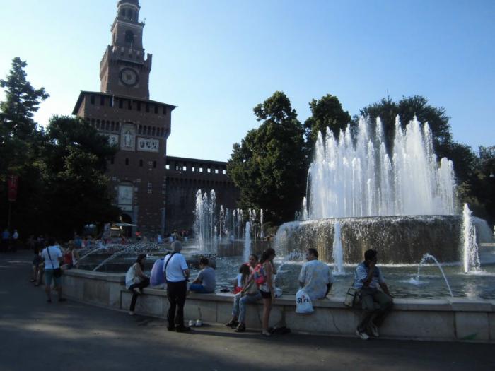 Аэрогриль напротив – бедноват. Лимонад вкусный. Замок Сфорцеско. Милый дворик с кремлевскими стенами (или наоборот — Кремль с миланскими?).