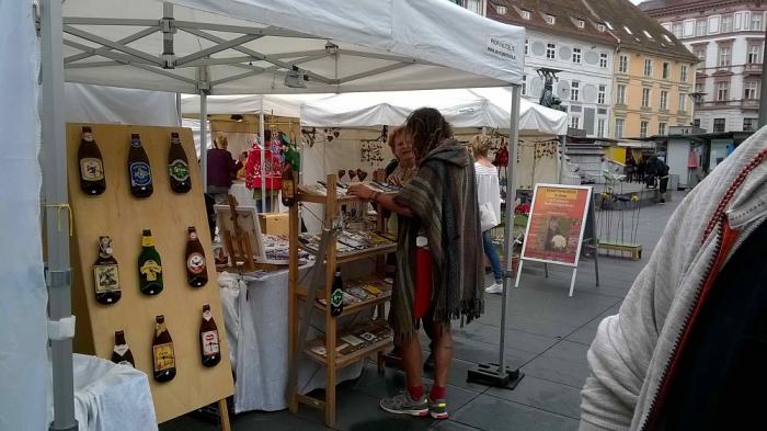 На площади был развернут небольшой арт-рынок. Грац вообще славен своими рынками, особенно крестьянскими. Но на них мы не побывали. Зато на этом в рядах с весенней рассадой я не смогла расстаться с парой пряных кустиков (розмарин и еще что-то), пахли одуряюще. Прикупили за 3 эуро…