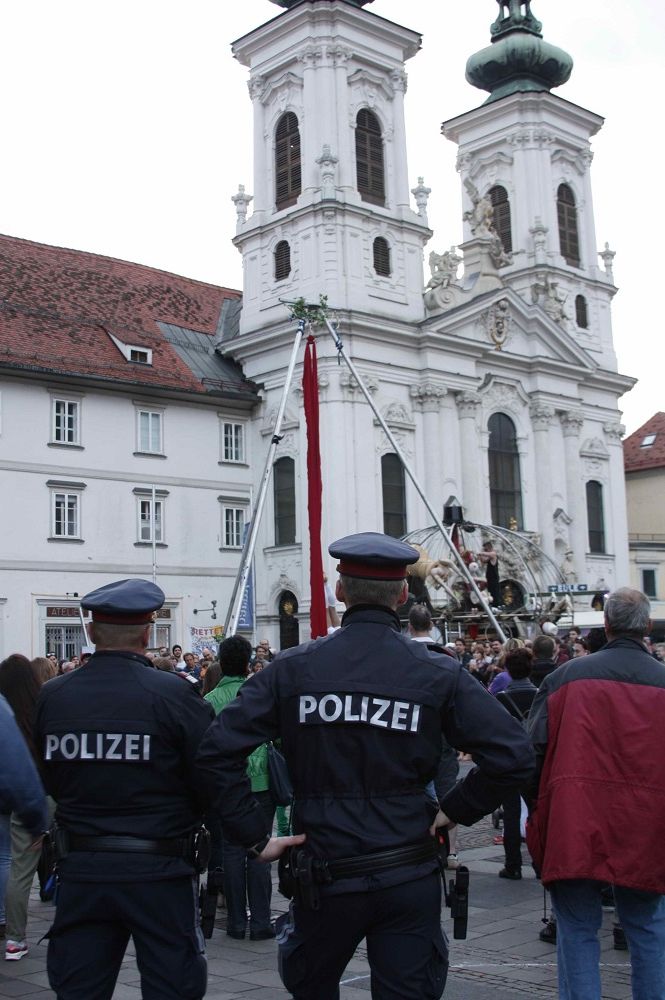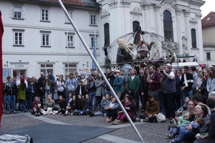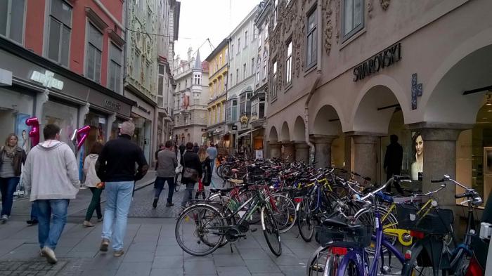 Тут у нас сложилось впечатление, что все население пустынных городков, через которые мы до этого проезжали (Ой, смотрите, ребенок в песочнице! — Наверное, его забыли! — Да нет, это манекен..) переехало в город Грац. По крайней мере, на выходные.