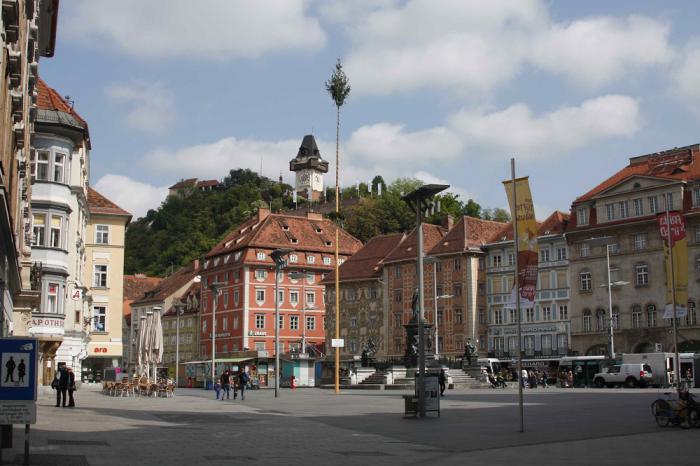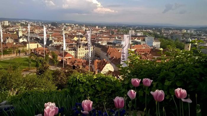 Грац-город со своим характером. Здесь средневековый пешеходный центр, из которого вырастает гора с крепостью Шлоссберг и Часовой башней.