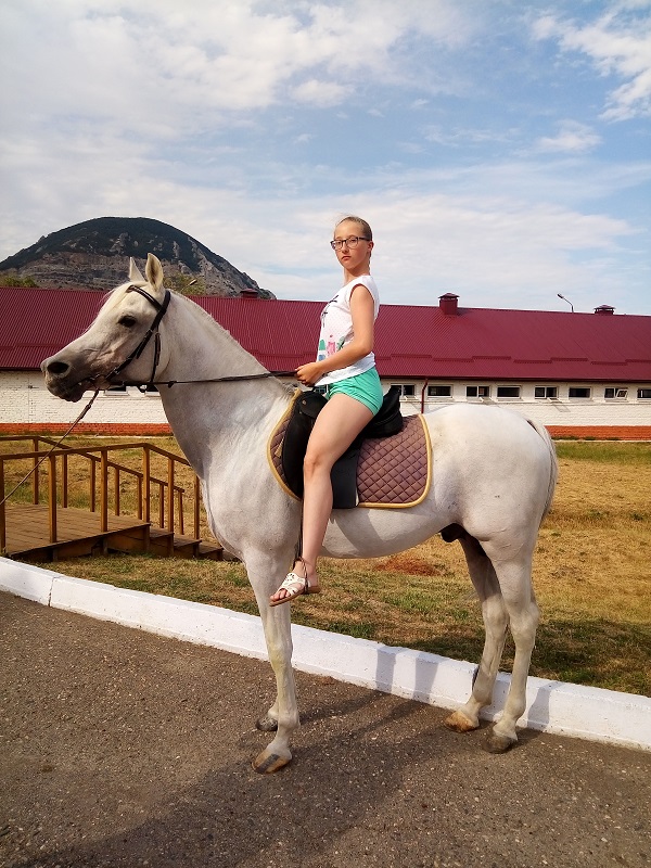 День 9 — 10. На этот день у нас планировался выезд, однако оставалось ещё одно место, которое было необходимо посетить – это самый большой в России конный завод – Терский. По нему проводят экскурсии. Если быть точнее всех заводят в здание и рассаживают по местам, а затем на манеж выбегают один за другим кони, а зрителям в это время рассказывают их «биографию» и то, к какой породе они принадлежат. Именно здесь, кстати, находится конь В. В. Путина. На нем предлагают сфотографироваться за 100 рублей, поэтому мы не упустили возможность и тоже сделали редкий снимок.