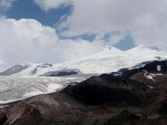 День 7. Невозможно побывать на Кавказе, но не «залезть» на самый высокий его пик – Эльбрус. О существовании канатной дороги на самую знаменитую гору России мы узнали, когда поднимались на гору Домбай, поэтому выкинули из плана прогулку по Ессентукам и поставили на ее место этот подъем.
