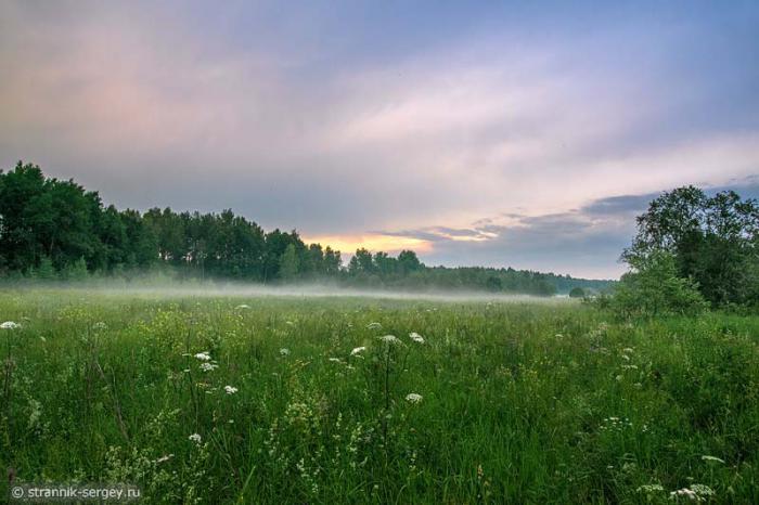 Все заполнилось нереальным сиреневым светом. На мысу реки Нерль напротив Бабьей Горы подымался легкий дымок. Кто-то жег костер.