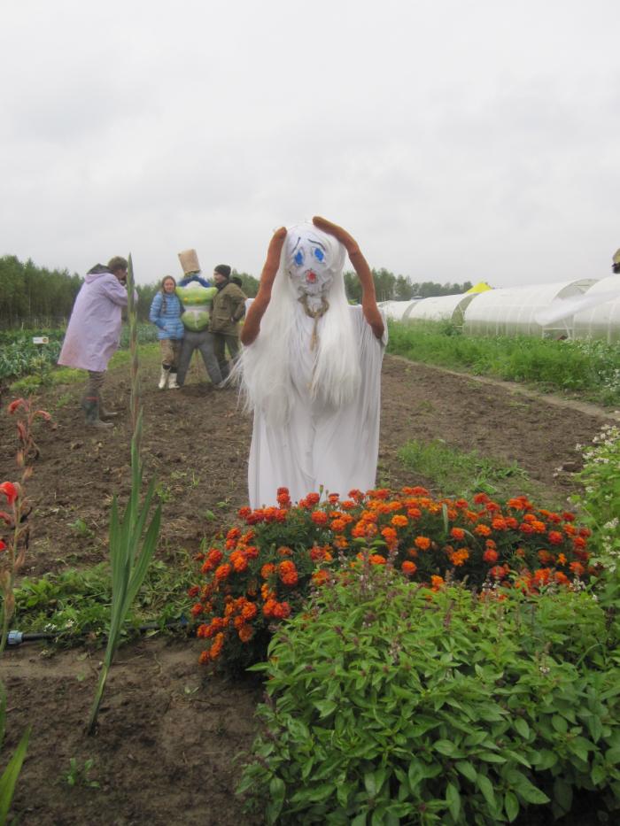 надо сказать, что ужину у фермеров предшествовал конкурс на изготовление пугал… сначала без особого энтузиазма, но потом уже войдя в раж, мы из подручных материалов сделали Люсю