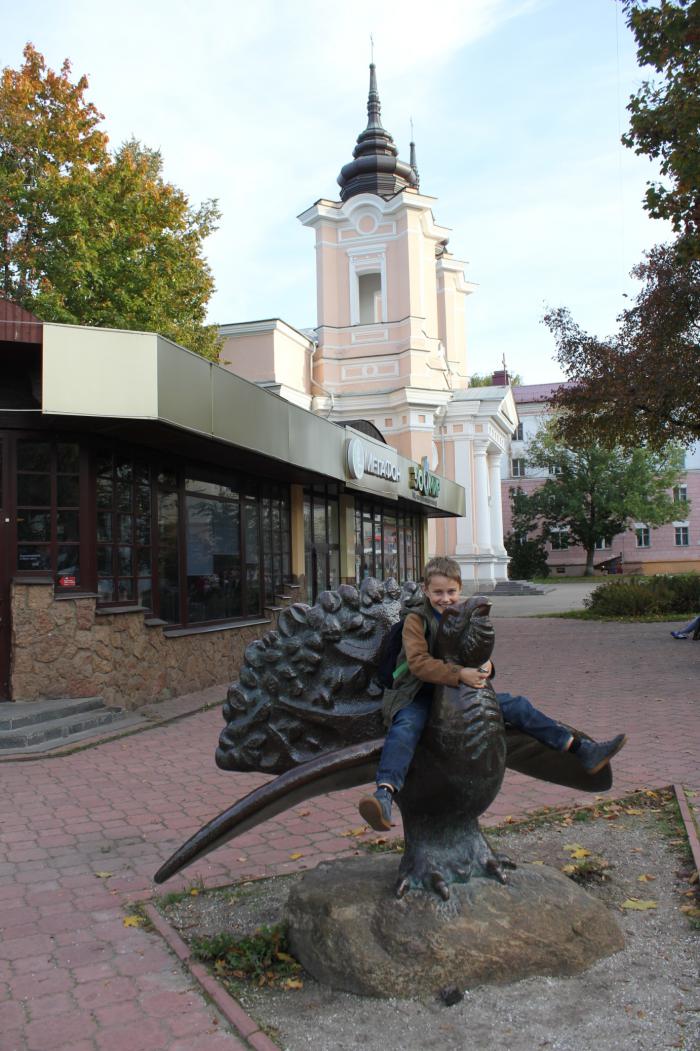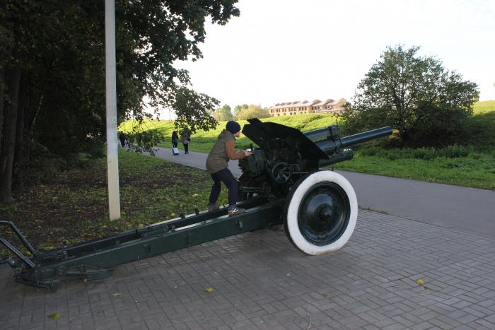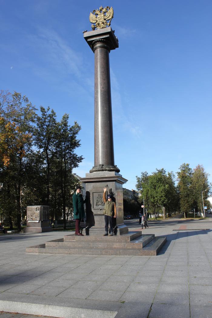 Встречала нас, после того, как мы оставили машину на парковке – стела Город Воинской Славы. Как я уже потом понял, такие монументы стоят во всех городах, удостоенных этого звания. Во всяком случае в Пскове мы видели точно такой. Ну с псковским «характером» – на тумбах по краям изображены фрагменты псковской воинской доблести. А тут – Новгородской, начиная с Александра Невского и заканчивая 41 годом. Забегая вперед скажу, что псковичи обижаются — город, гораздо старше Москвы, столетиями стоявший на рубежах Руси и охранявший её западные границы, был удостоен этого звания лишь во втором десятке…