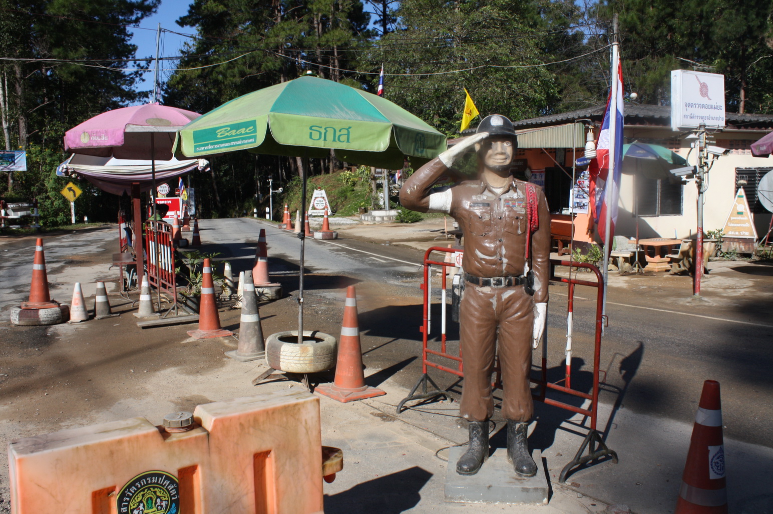 Подъезжая к городу, проезжаем типичный полицейский пост с очень добрыми полицейскими.