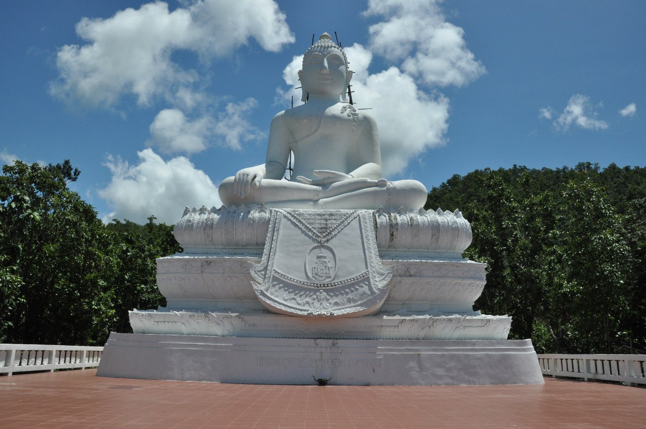 Статуя Будды на холме. Статую видно из центра городка. Она расположилась на холме, лицом к городу, как наблюдатель. Добраться можно на транспорте по извилистой дороге или пешком по длинной лестнице