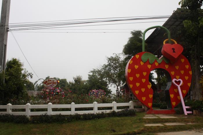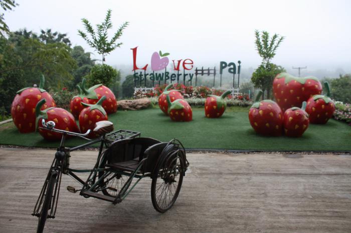 В Пае есть одно замечательное место, которое я бы назвал визитной карточкой этого поселка. Это клубничный резорт. Находится он при въезде в Пай и его сложно пропустить.