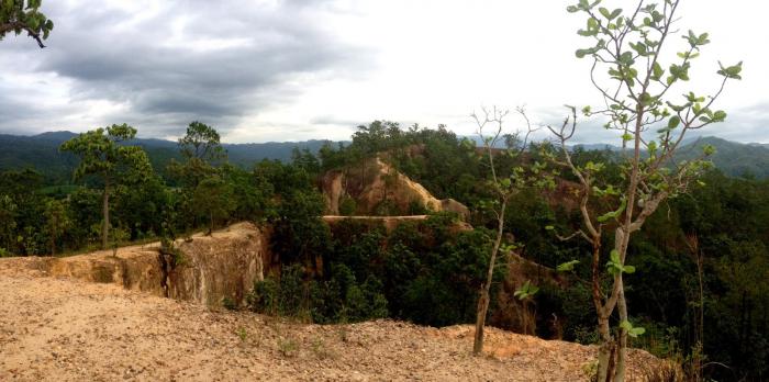 Пайский каньон. Одно из самых интереснейших мест в Пае. Поднявшись на холм, открывается красивейший вид на долины и горы. Отсюда можно видеть поля, аккуратно разбитые по квадратам, маленькие домики, расположенные прямо на склонах гор, а так же набраться смелости и пройтись по узкой тропинке Пайского каньона. Около километра тропинки, с обеих сторон окруженной обрывами