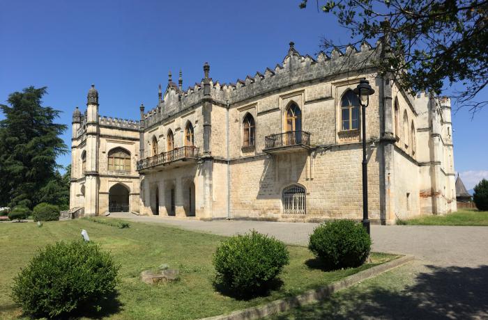 Ныне существующий дворец возведён в 1873-78 гг. для княгини Екатерины Дадиани. При проектировании архитектор Эдгар Дж. Райс отталкивался от Воронцовского дворца в Алупке. Второй дворец возведён в 1880-е гг. для её сына, последнего мегрельского правителя, по проекту Леонида Васильева.