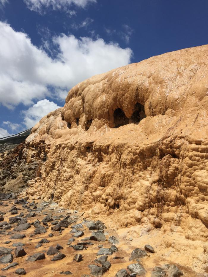 Следующим и не последним чудом природы мы встретили Нарзанный источник. Проехать его днем просто невозможно, рыжевато-коричневатое образование сразу бросается в глаза. Пить из него воду мы побоялись.