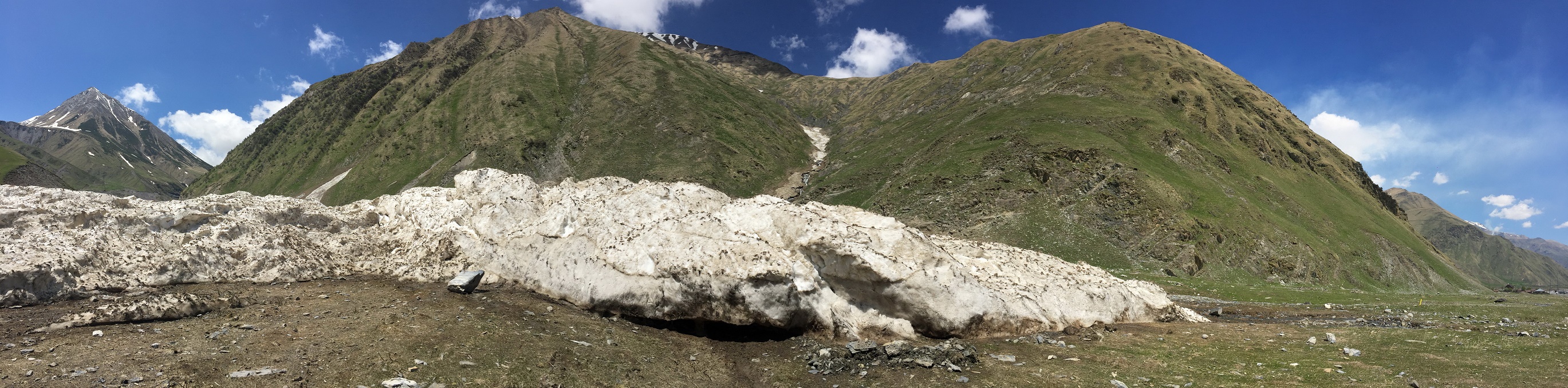 Природа подарила нам самый настоящий ледник нереальных размеров, я впервые прогулялся по нему, попытались слепить снеговика — не удачно :)