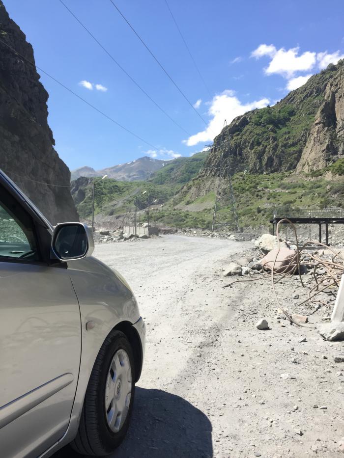 Далее по горной дороге нам постоянно встречались автовозы с автомобилями, эвакуаторы с машинами. По нашим примерным подсчетам за неделю поездки мы встретили около 150 машин, которые везли на главный рынок в Тбилиси — Рустави.