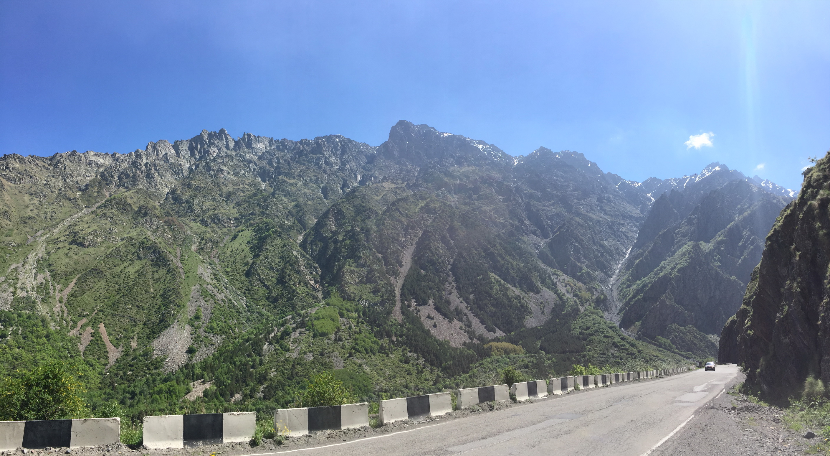 Из Владикавказа выехали в 9:00 утра. К своему удивлению на границе оказались буквально через 30 минут, прошли две границы за 40 минут и мы со штампом в паспорте Georgia на грузинское земле. Удивлению нет предела! Форма пограничников, автомобили полицейских, здание пограничного пункта и конечно же грузинская речь…