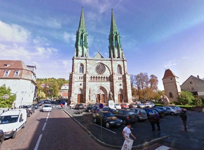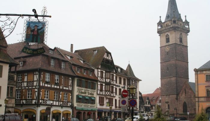 Милейшие фахверковые домики с двориками и ставнями, украшенные цветами создавали волшебное настроение. Атмосфера маленького уютного городка расслабляет и успокаивает несмотря на оживленную атмосферу старинных улиц. Посетили «заведение» в кафешке под предлогом чашечки ароматного кофе. Здесь если и людно из-за туристов, то только от иностранных. Русских туристов, и уж тем более экскурсий нам не попалось. С одной стороны – грустно за россиян, с другой стороны это намёк на некую эксклюзивность нашего замысла. На углу в булочной (Boulangerie – не иначе) купили хрустящий багет и пирожные. В мясной лавке запаслись на вечер сочными колбасными деликатесами. Ещё будучи в Праге я уронил очки на брусчатку, дужка сломалась у основания. В принципе надежды на дальнейшее использование не было, но на всякий случай, там же в Праге, купил малюсенький тюбик клея и пока мы закусывали пиво спомаженным сыром, дужка схватилась как новая. Чтобы не ронять очки в дальнейшем, мы зашли в Обернае магазин оптики чтобы купить верёвочку для них. Продавщица – милейшая девушка, и такая красотка – держите меня семеро. У неё купишь даже если и не сильно надо. Так это я – про языковой барьер. Как попросить верёвочку для очков не зная французского? Расслабьтесь и попробуйте что ни будь попросить без слов, чтобы человек догадался. У меня получилось. Получилось и в местном супермаркете MATCH, нам нужен был пятновыводитель, но здесь, конечно помогла картинка на флакончике. Пятновыводитель оказался хороший, до сих пор пользуемся им дома.