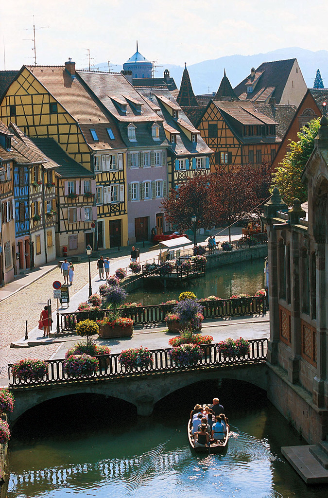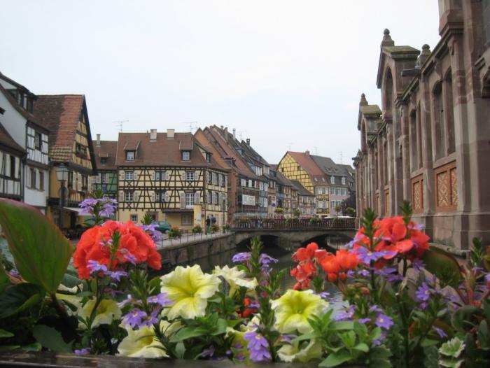 Под старыми стенами Кольмара воды канала разбегаются ручейками, принося прохладу и умиротворение. Местные жители украшают стены цветами. Расположение кварталов запутало нас так, что даже с помощью автонавигатора, пришлось сделать три круга. И только посещение местного колхозного рынка помогло расставить точки над топографическим критИнизмом.