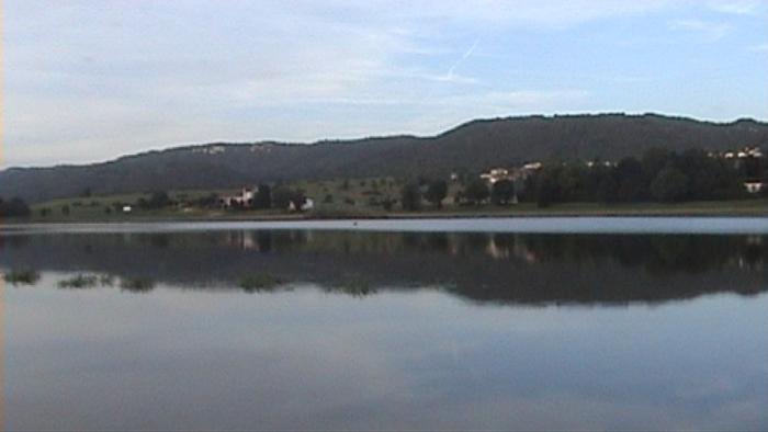 Выбравшись из тесного города на вольный воздух, мы раскрыли рты от меняющегося ландшафта. Дорога незаметно завела в горы. Настоящие горы с крутыми каменными склонами, правда без крутых серпантинов. Запомнился специфический запах в горах. Воздух чистый, но пахло будто мочевиной. Это могла быть цветущая растительность в тени клонящегося солнца. Дорога обвилась вокруг ущелья затопленного водой. Водохранилище и представляло собой большую запруду с водой бирюзового цвета и домиками на узких берегах, подпёртых сзади горной стеной. В таком красивом месте и располагается кемпинг «Georges de Origin». К сожалению, не могу найти его координаты, название неточное.