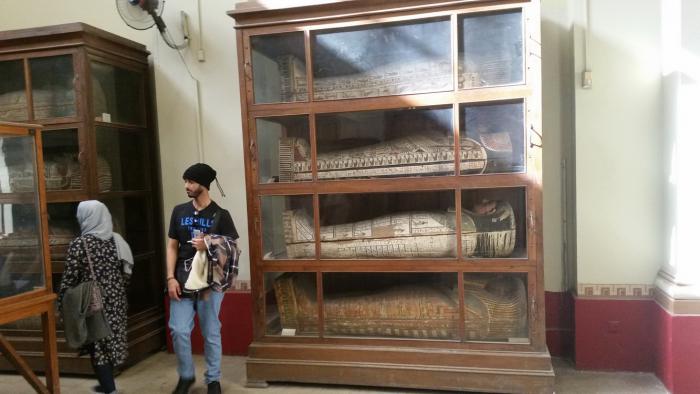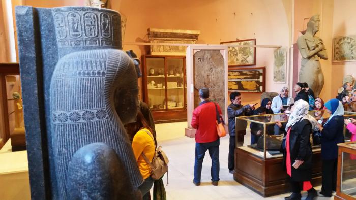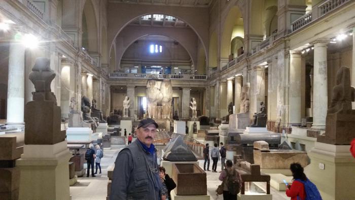Первый пункт нашего посещения – знаменитый Египетский национальный музей, расположенный в Каире на площади Тахрир. Это крупнейшее в мире хранилище предметов древнеегипетского искусства, коллекция которого насчитывает около 160 тысяч экспонатов всех исторических периодов древнего Египта. Основан он в 1858 году как Булакский музей, с 1891 по 1900 год назывался Гизехским музеем, затем — Египетским. В новом здании, где мы побывали, музей открылся в 1902 году.
