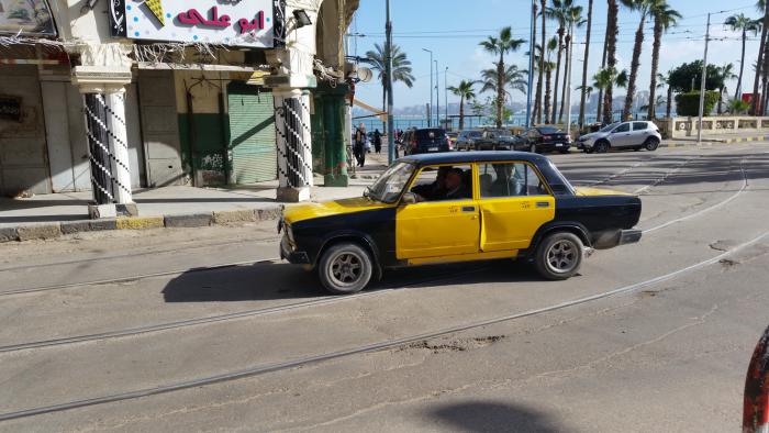 Отличают город и красные двухэтажные автобусы, которые время от времени можно заметить проезжающими по набережной, а также такси, имеющие в Александрии жёлто-чёрную расцветку. Парк таксомоторов процентов на 90 представлен до боли знакомыми нам автомобилями «Жигули» (которые тут все знают под названием «Лада»). Как и в Каире, практически весь местный автопарк основательно мятый и поцарапанный.