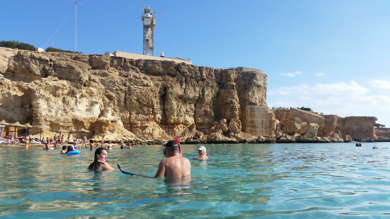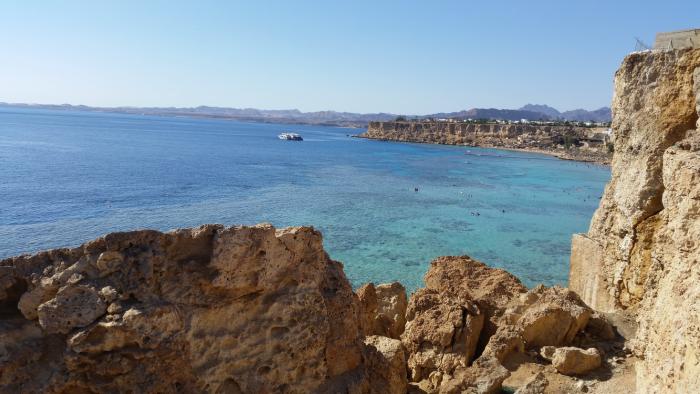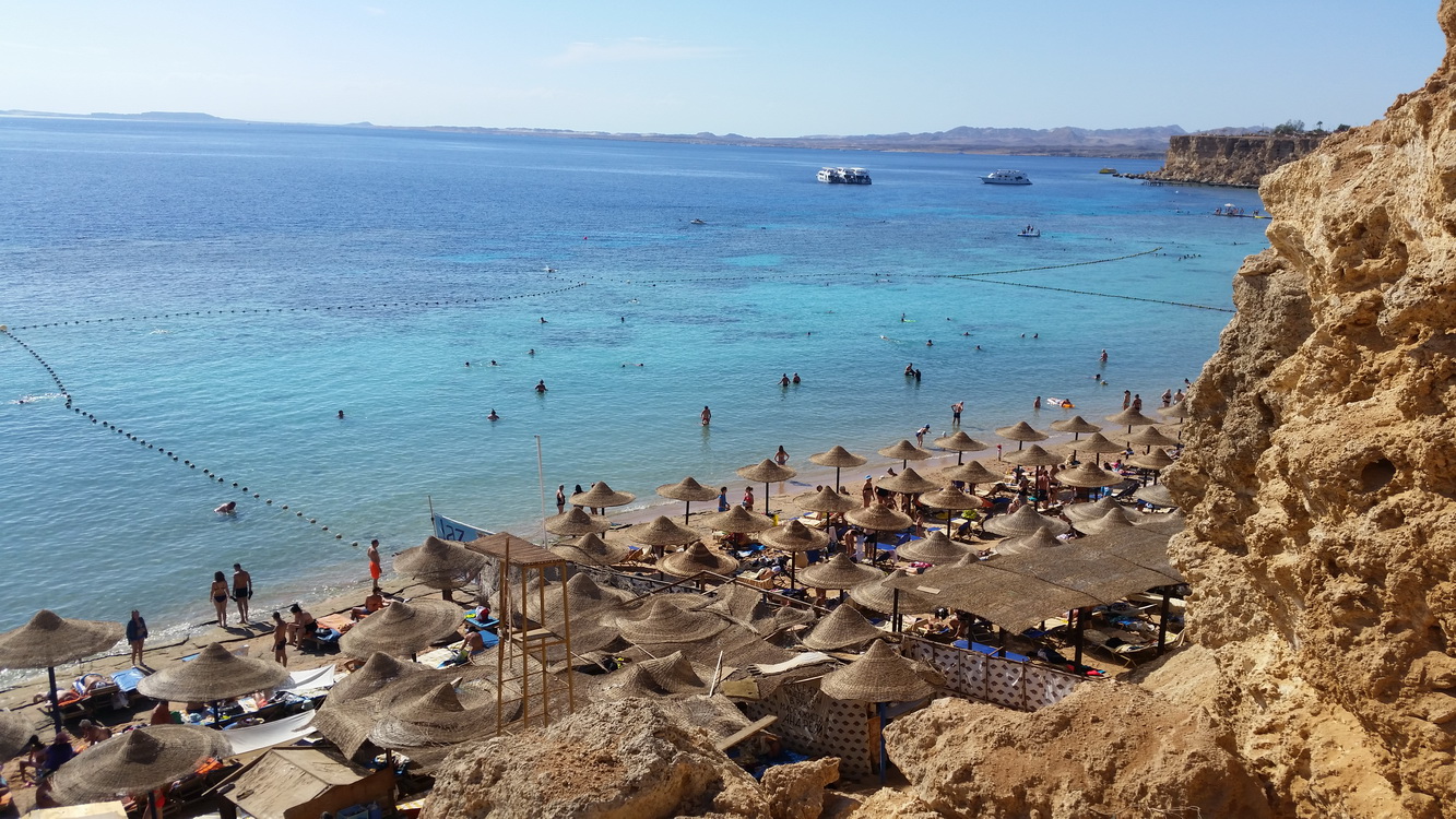 И если уж я столь много времени уделил Шарм-эль-Шейху (а как без этого?), то нельзя не рассказать об одной из главных достопримечательностей города. Конечно, имеется в виду Красное море, на побережье которого он расположен. Вообще здешние места отличаются чрезвычайно жарким климатом. Шарм-эль-Шейх имеет тропический пустынный климат с очень малым годовым количеством осадков. Даже в январе-феврале ночные температуры опускаются в среднем не ниже +15 °C (и временами бывает довольно прохладный ветер), но днём тут обычно светит яркое солнце и многочисленные посетители пляжей загорают и купаются: температура воды позволяет.