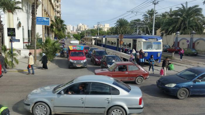 Еще в 1854 году Александрию соединили с Каиром железнодорожной линией, и это была первая железная дорога на африканском континенте. Старейший в Африке трамвай начал работать в Александрии в 1860 году и до сих пор является одним из главных видов общественного транспорта. Сначала между станциями ходила обыкновенная конка, затем стала применяться паровая тяга, а в 1902 году вся система была электрифицирована. Сейчас Александрия является одним из трёх городов мира, где в трамвайном парке среди прочих используются двухэтажные вагоны (двумя другими являются британский Блэкпул и китайский Гонконг).