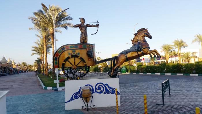 Нужно еще учесть, что в городе проживает в основном мужское население. Вся обслуга в отелях – исключительно мужчины молодого и среднего возраста, которые приезжают сюда из различных районов страны для работы, так сказать, вахтовым методом. Своим женщинам египтяне не позволяют работать обслугой для иностранцев. В Шарм-эль-Шейхе женщин можно увидеть очень редко, в основном проезжающих мимо за рулем собственных автомобилей. Все прочие (немногие) представительницы прекрасного пола, которые все же подрабатывают тут гидами или, допустим, танцовщицами в отелях, являются иностранками. Одна из них, украинка по национальности, в свое время вышедшая замуж за египтянина, возила нас на экскурсию по городу в первый день нашего здесь пребывания.