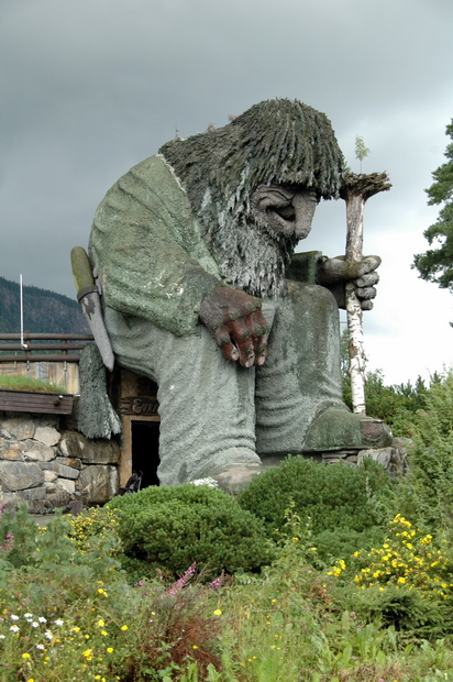 Посреди парка сидит огромный троллище где то в 5 человеческих ростов. В качестве посоха в руке у него вырванная с корнем береза. Охраняет он вход в музей троллей, представляющий из себя череду темных подземных пещер с устроенными в них движущимися сценами из норвежских сказок про троллей. Большинство сказок, к нашему сожалению оказались нам неизвестны, но сделано было все настолько пострясающе увлекательно, что мы пообещали себе их все обязательно прочитать.»