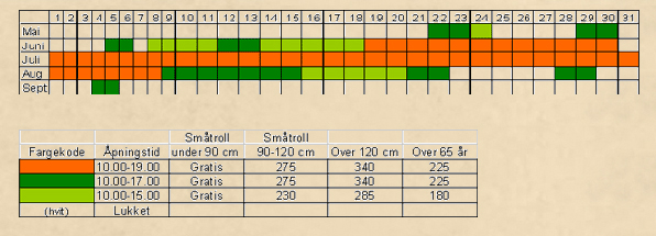 28 juni – 31 augustiVuxna: 145 krBarn: 125 kr (2-15 år, under 2 år fritt)
